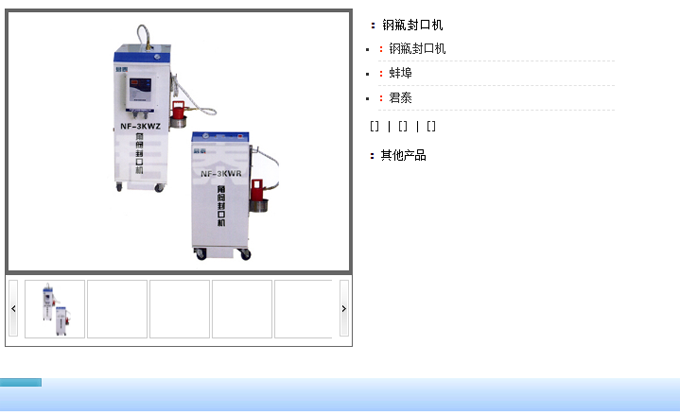 钢瓶封口机 钢瓶封口机 本产品设计、安装使用执行的GB50028-93《城镇燃气设计规范》已广泛应用于液化石油气、乙炔、氧气等易爆行业的压力钢瓶包装产品阀门标识封口。 NF系列全(半)自动钢瓶角阀封口机,配置齐全、结构紧凑、小巧美观,进水、加热、压力双重恒定保护,断水自动停机,实行全自动控制运行。性能安全可靠,操作简单方便易于掌握。主机安装于非防爆区。最大使用蒸气压力0.4mpa,配置功率3-18KW,蒸气输出量4.5-22kg/h ,电压380V(220V),实际能耗按需求自动调节,远远低于配置。封口器可直接安装在防爆区内的封口现场充装工位附近(数量随充装工位而定)。在四米半径之内任意封口,对钢瓶大小,高低,位置远近均无要求,使用方便。封口时只需将封口器套丰已装有标识套的角阀上,1-2秒钟即完成封口。因无电源、明火进入充装现场,且蒸气封口防止静电产生,免除隐患,安全可靠。用户可根据充装量的大小、主机与钢瓶充装封口现场的距离,选择不同型号的机器。根据国家规范,本机部分重要组件,由C级专业锅炉制造企业定配。