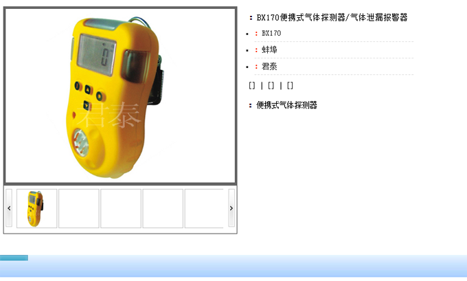 BX170便携式气体探测器 BX170型便携式单一气体探测器,是一种可连续检测可燃气体浓度或者有毒气体浓度的本质安全型设备。它适用于防爆,有毒气体泄漏抢险,地下管道或矿井等场所,能有效保证工作人员的生命安全不受侵害,生产设备不受损失。 书签: 便携式气体探测器,BX170便携式气体探测器,气体探测器 产品详细描述: BX170型便携式单一气体探测器,是一种可连续检测可燃气体浓度或者有毒气体浓度的本质安全型设备。它适用于防爆,有毒气体泄漏抢险,地下管道或矿井等场所,能有效保证工作人员的生命安全不受侵害,生产设备不受损失。 BX170型便携式单一气体探测器采用自然扩散方式检测气体,敏感元件采用优质气体传感器,具有极好的灵敏度和出色的重复性;仪器采用嵌入式微机控制,操作简单,功能齐全,可靠性高,具有多种自适应能力;小巧美观的便携设计不仅使您爱不释手更便于您移动使用。 BX170型便携式单一气体探测器外壳采用高强度工程塑料,复合防滑橡胶而成,强度高、手感好,并且防水、防尘、防爆。 ∮主要功能及特点: ·仪器采用先进的超低功耗16位微控制器 ·超宽视角图形液晶显示器 ·可设置高低报警点,两级报警,屏幕显示报警类别 ·标定浓度值可调,方便用户标定 ·可燃气体传感器高浓度保护、故障自检功能 ·电池欠压提示 ·提供实时时钟显示 ·模块化传感器,便于维护 ·自动校准功能,减小检测误差 ·两级三重报警(声、光、振动),不易忽略 ·毒性气体另有STEL和TWA报警 ·开机自检测功能,并具有先进的自诊断和自修复功能 ·密码管理功能,重要操作需密码验证,有效防止误操作 ·防滑设计、坚固耐用 ·本质安全型仪器
