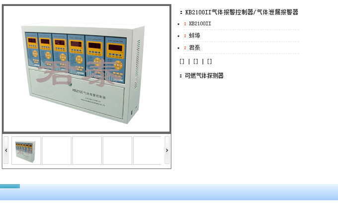 KB2100II气体报警控制器 KB2100II型气体报警控制器是我公司研制的多点监控气体报警控制器, 用于检测空气中可燃性气体或液体蒸汽爆炸下限以内的含量及毒性气体浓度,本系统采用单对单控制,也可通过485上传,实现集中控制。本系统采用先进的微处理器作为控制单元,响应速度快。 书签: 气体报警控制器、KB2100II气体报警控制器 产品详细描述: KB2100II型气体报警控制器是我公司研制的多点监控气体报警控制器, 用于检测空气中可燃性气体或液体蒸汽爆炸下限以内的含量及毒性气体浓度,本系统采用单对单控制,也可通过485上传,实现集中控制。本系统采用先进的微处理器作为控制单元,响应速度快。当环境中可燃气体浓度达到或超过预置报警值时,控制器立即发出声光报警,以提醒及时采取安全措施,并控制驱动排风或其他外设动作,防止爆炸、火灾及中毒事故的发生,从而保障生命、财产的安全。 KB2100II型气体报警控制器系统可广泛使用于工厂、油库、液化气站、煤气站、加油站、喷漆房等需防火防爆的场所进行安全检测报警。 ∮主要功能及特点: ·独立单元自由组合,可与各种气体探测器配合 ·三级报警设置,功能更强大 ·报警点联动输出,继电器输出无源常开 ·智能化系统,方便的在线零点校正 ·测量量程、分辩率可选 ·每个控制单元均有1个4~20mA信号和RS485信号输出 ·模拟中文菜单,操作更方便 ·七个LED灯显示操作模式及四个LED灯指示状态,模拟中文菜单,操作更方便 ·具有密码锁定功能,防止误操作或非法授权人的进入安装、维护简单
